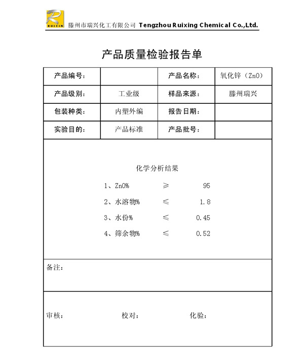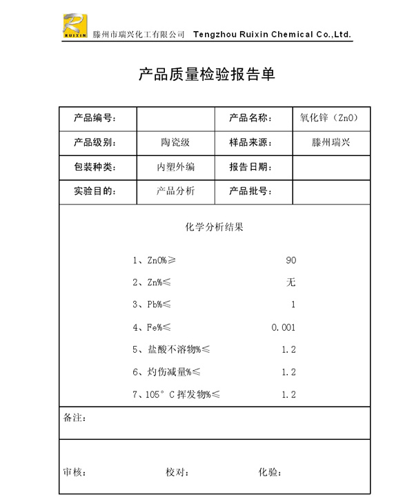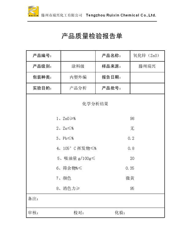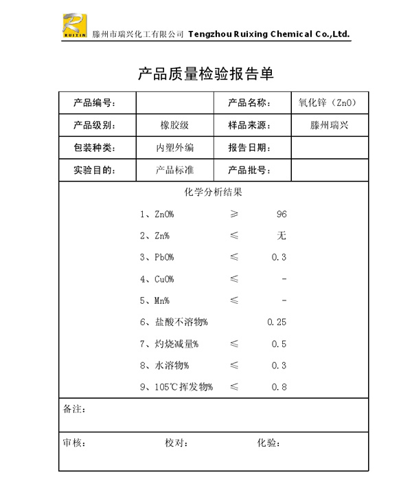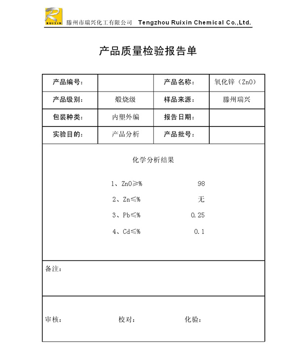 瑞興化工有限公司是生產(chǎn)氧化鋅的重點(diǎn)企業(yè),于2008年通過(guò)ISO9001:2008質(zhì)量管理體系認(rèn)證?!叭鹋d”牌氧化鋅在國(guó)內(nèi)擁有較大穩(wěn)定的市場(chǎng),并遠(yuǎn)銷(xiāo)東南亞、中東、中南美等國(guó)家和地區(qū),在國(guó)內(nèi)外享有較高聲譽(yù)。